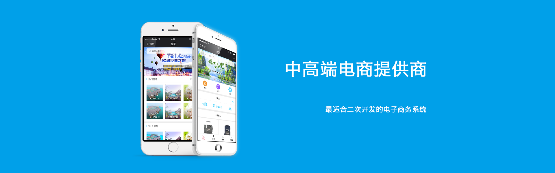 中高端微信小程序电商,产品包括B2B2C、B2C、B2B、O2O、C2B、C2C等